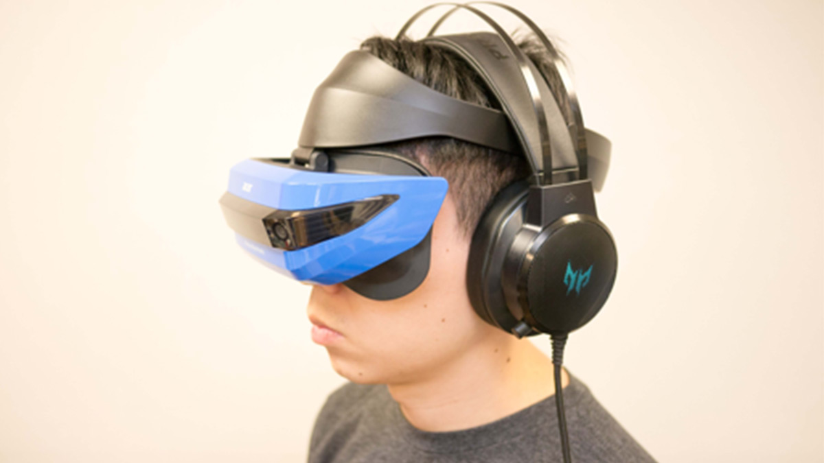 Acer Windows 頭戴式混合實境顯示器以藍黑雙色為設計,強調科技與未來感。