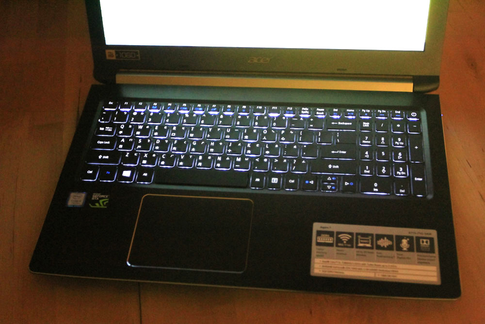 Aspire 7同樣是採用巧克力鍵盤設計,配置基本與Aspire 5並無太大差異,最大不同則是Aspire 7具備優雅的全新背光鍵盤,讓你就算在低光源環境仍舊可以舒適地打字。