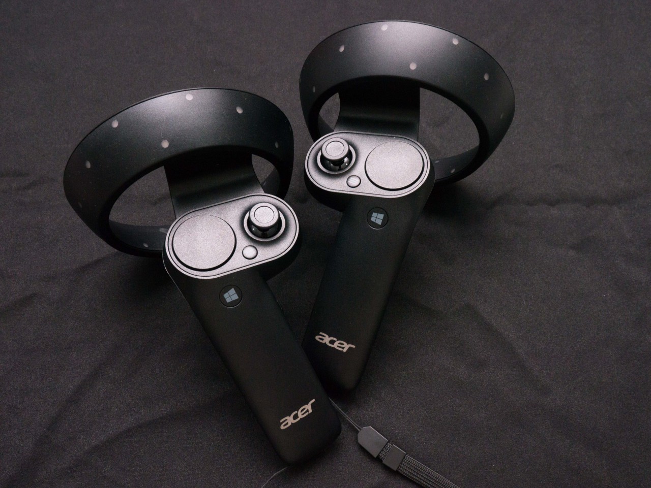 在操作方面,Acer AH100 也提供了左右手控制器,開啟後會自動和電腦的藍牙進行配對,上面圓形處的白點為 LED 光點,在使用時也是透過頭盔上的攝影鏡頭進行動態捕捉定位。