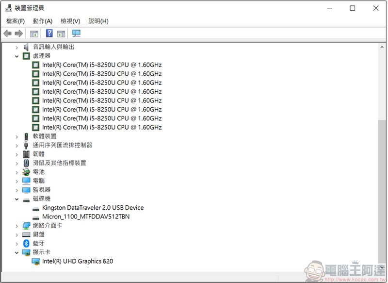 - 處理器:第八代 Intel Core i5- 8250U(1.60GHz ~ 1.80GHz)